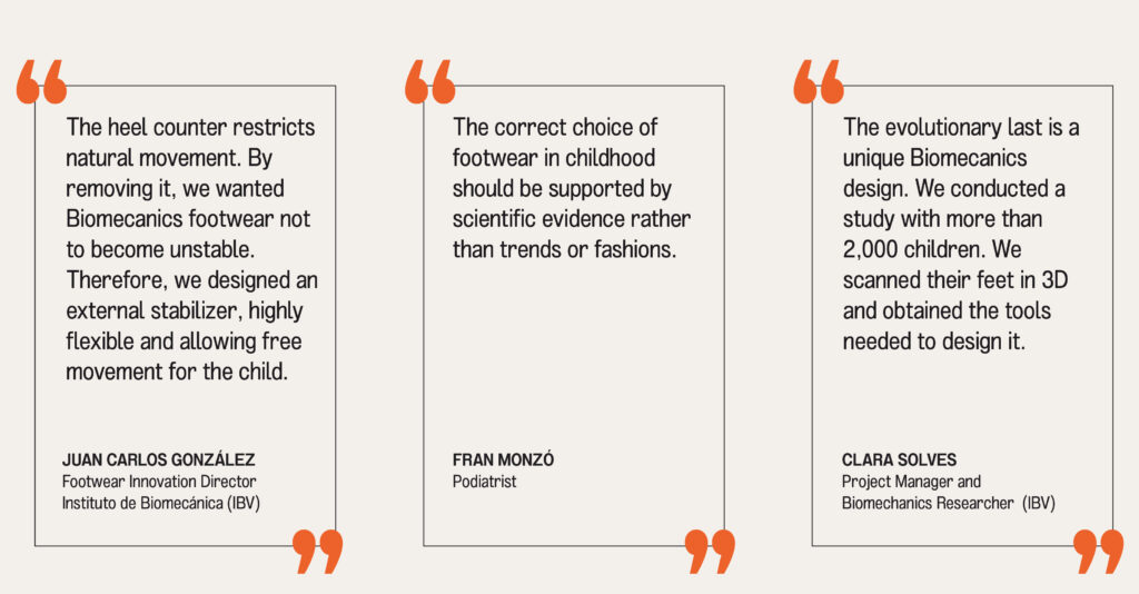 For us, science and the Institute of Biomechanics (IBV) give us the keys to designing suitable, respectful footwear for their feet; because feet need freedom and respect, yes—but also quality, fit, protection, comfort, and durability. And for us, bringing all of this together in our footwear, so your little ones can grow with it, is the most natural thing.